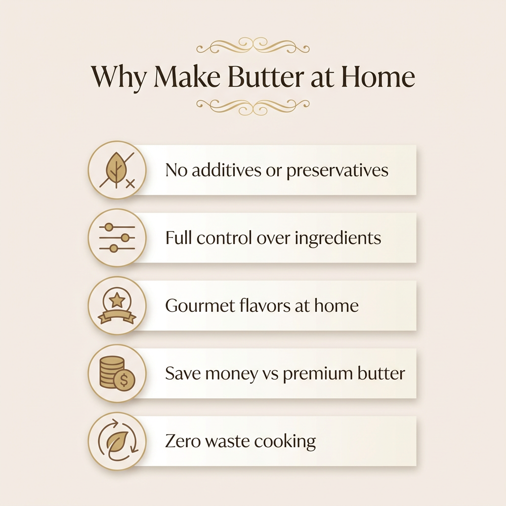 Making butter at home gives you complete control over ingredients, flavor, and quality.